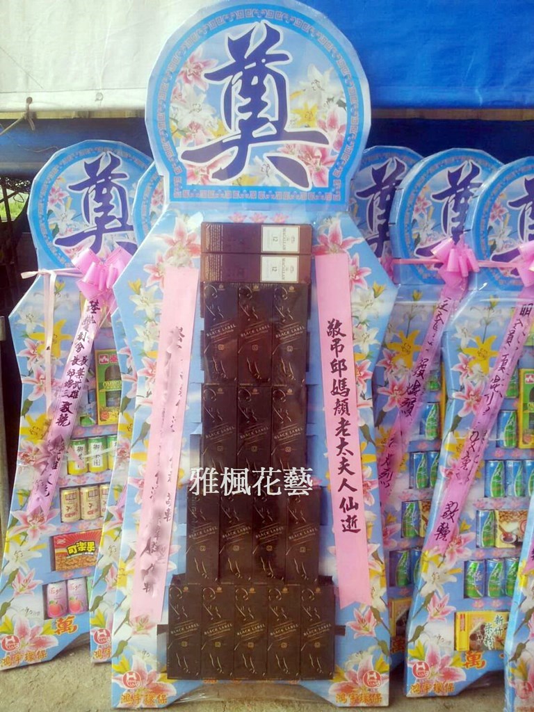 台中大肚區花店_台中龍井區花店送罐頭籃到喪家_台中霧峰區花店殯儀館送飲料塔米塔啤酒柱