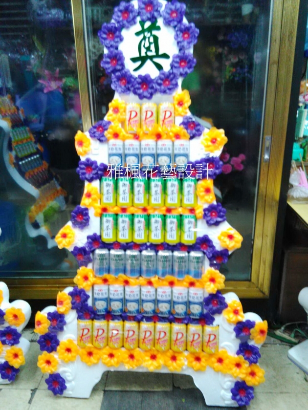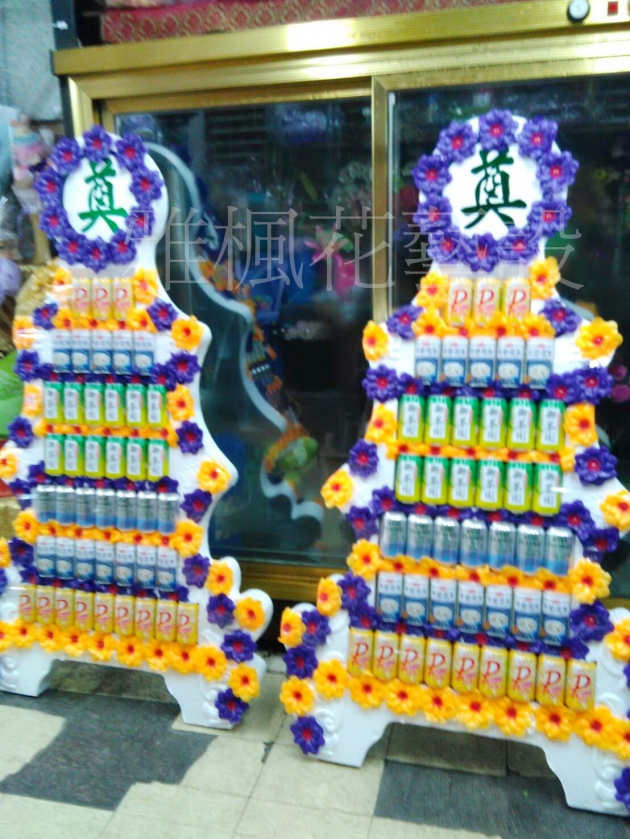 產品名稱:七層飲料啤酒籃一對_員林花店推薦雅楓花藝設計追思罐頭飲料籃