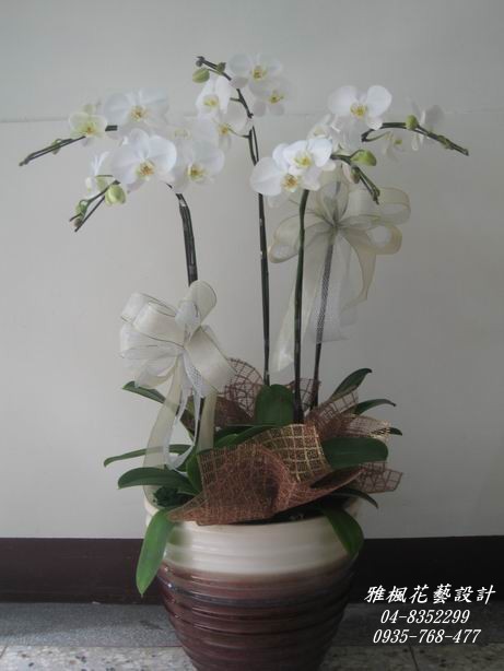 圖片中的作品是由設計師依產品圖片手工作完成,規格和質感相似。如要求100%產品圖相似度的顧客請勿訂購。蘭花品種與顏色如短缺,將以當季類似品種替換,花盆(器)籃子或配飾用品遇缺貨時,將以適當的容器,配飾用品替代使用。如有對於此產品相關問題,可直接電話聯絡04-8352299_0935-768477_0920-768477謝謝!!